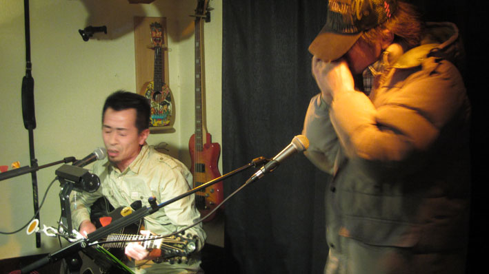 そう薄く照明が当たってない所には、ハーモニカ名手太郎さんもセッションに参加、